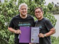 • Addison and Alan holding Mayor Harry Kim's proclamation.