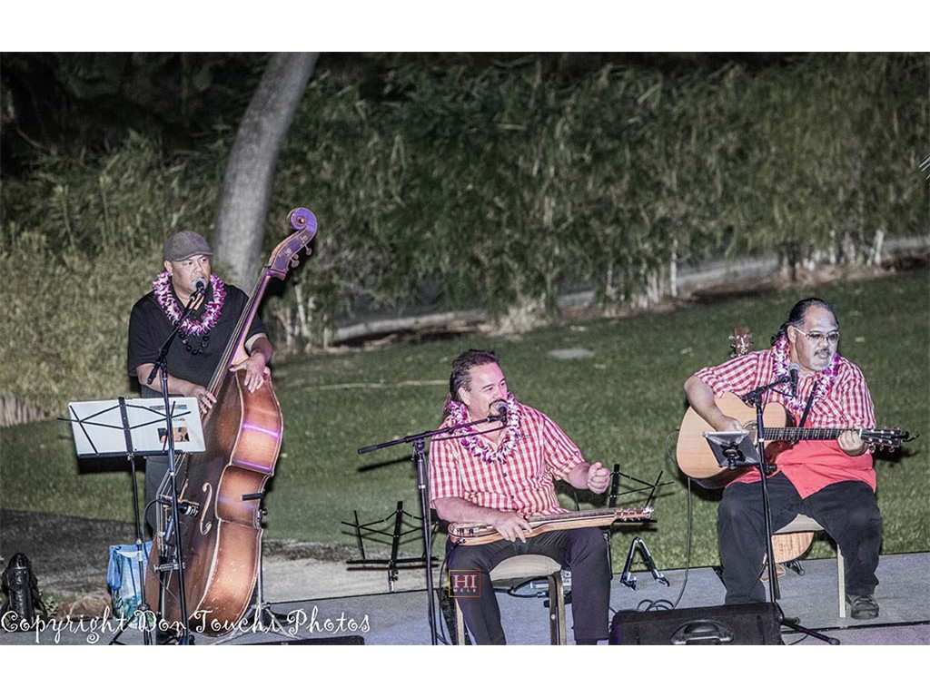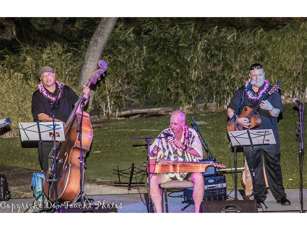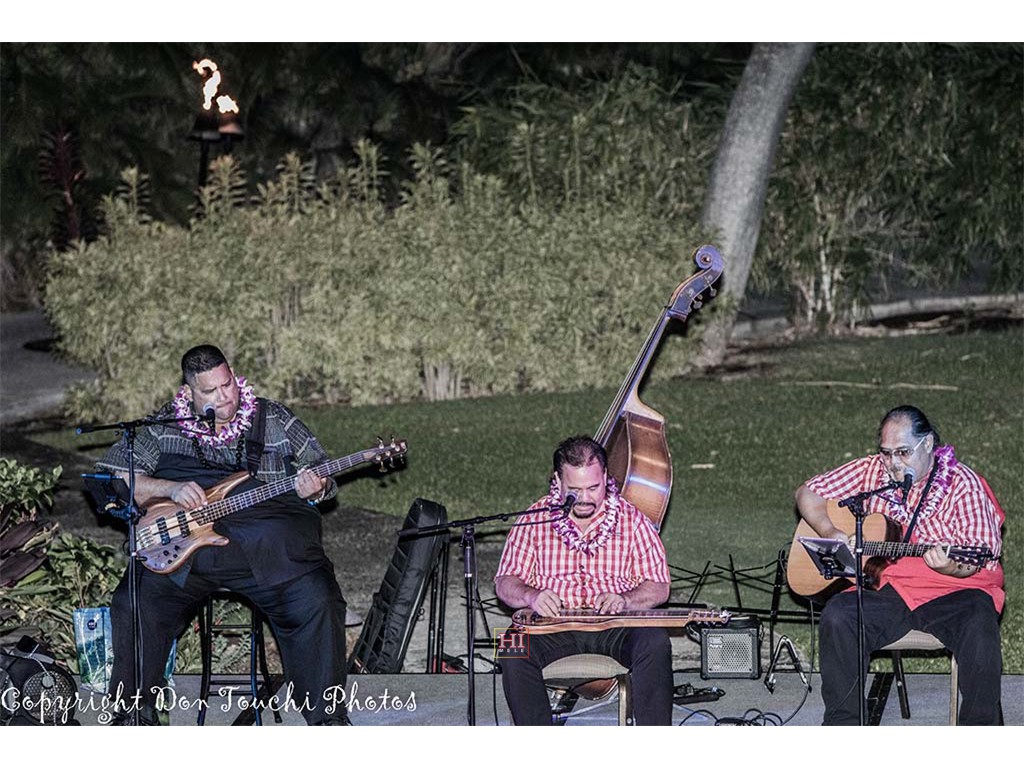 Featured steel guitarist Sonny Lim with Adam Asing on bass and David Kaio on guitar.