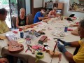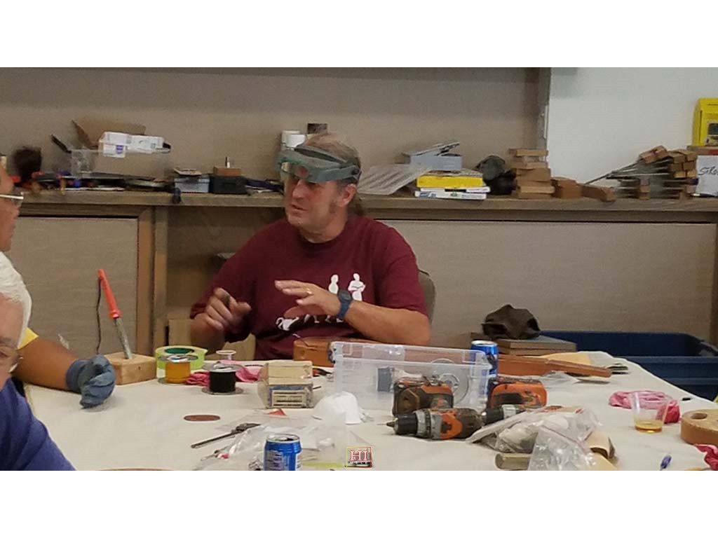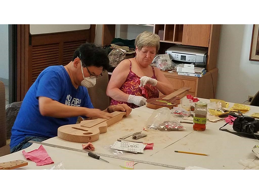 Some participants worked on sanding their instruments as Reginald K. Davis worked on his electronics.