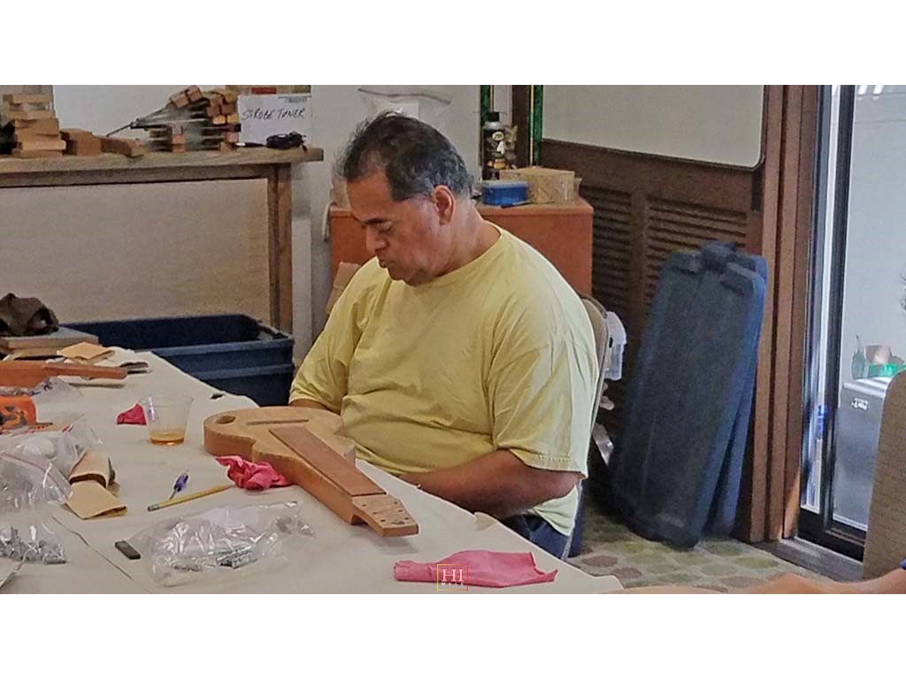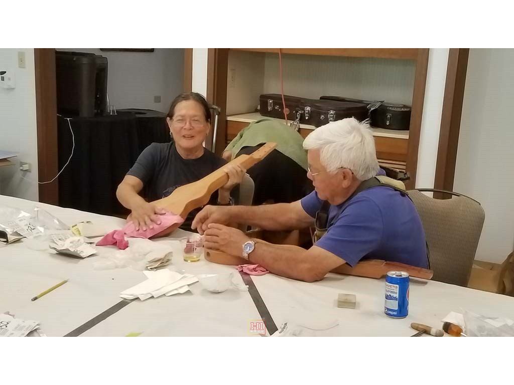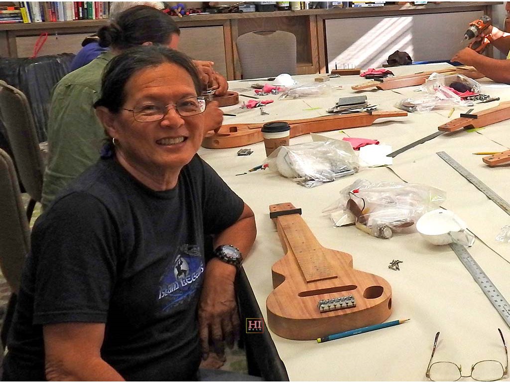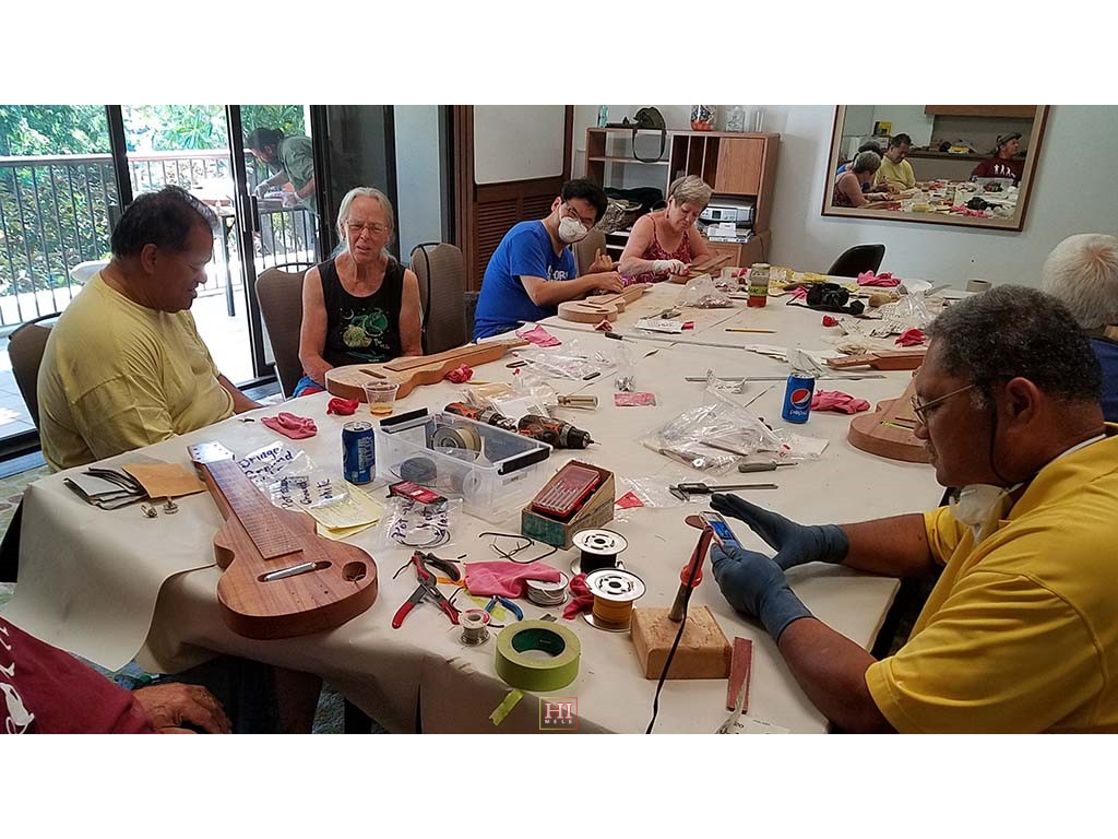 A fee-based steel guitar construction workshop was offered in the days preceding the festival. Luthier Bob Gleason guided workshop participants as they sanded, finished, and assembled their own 6-string lap steel guitars.