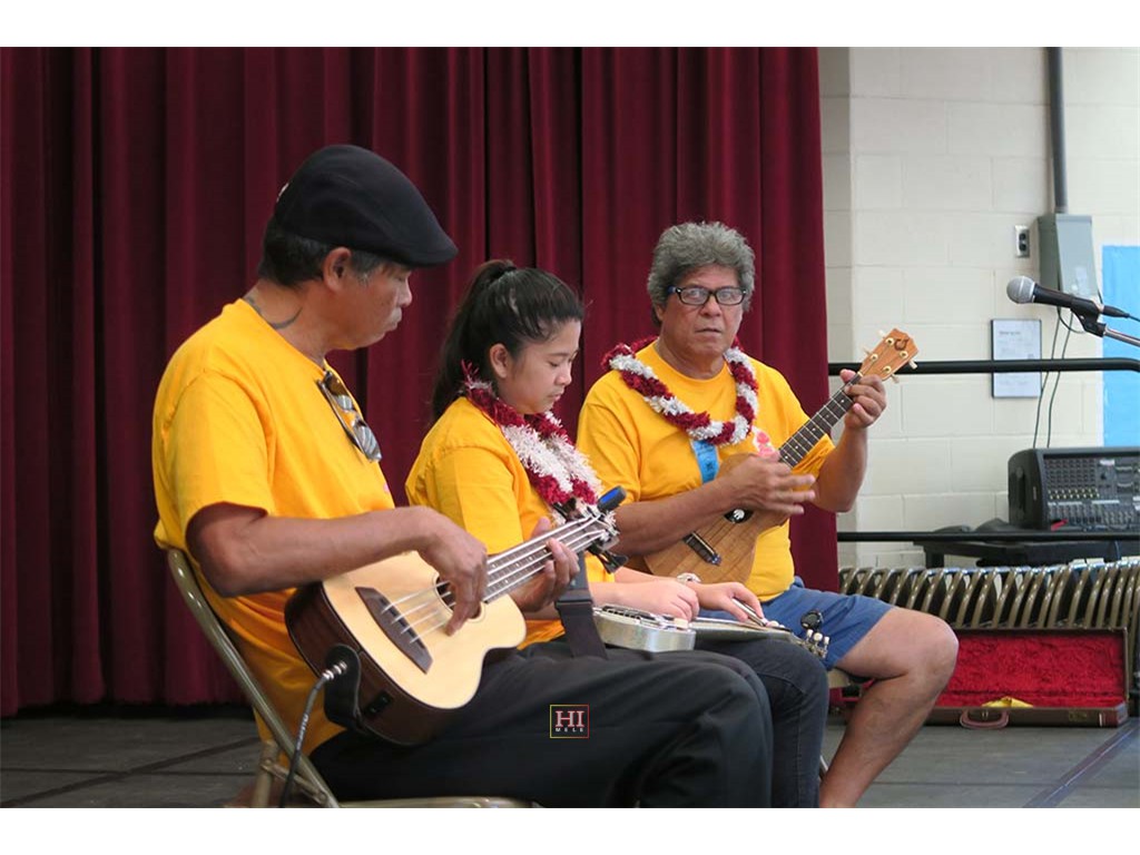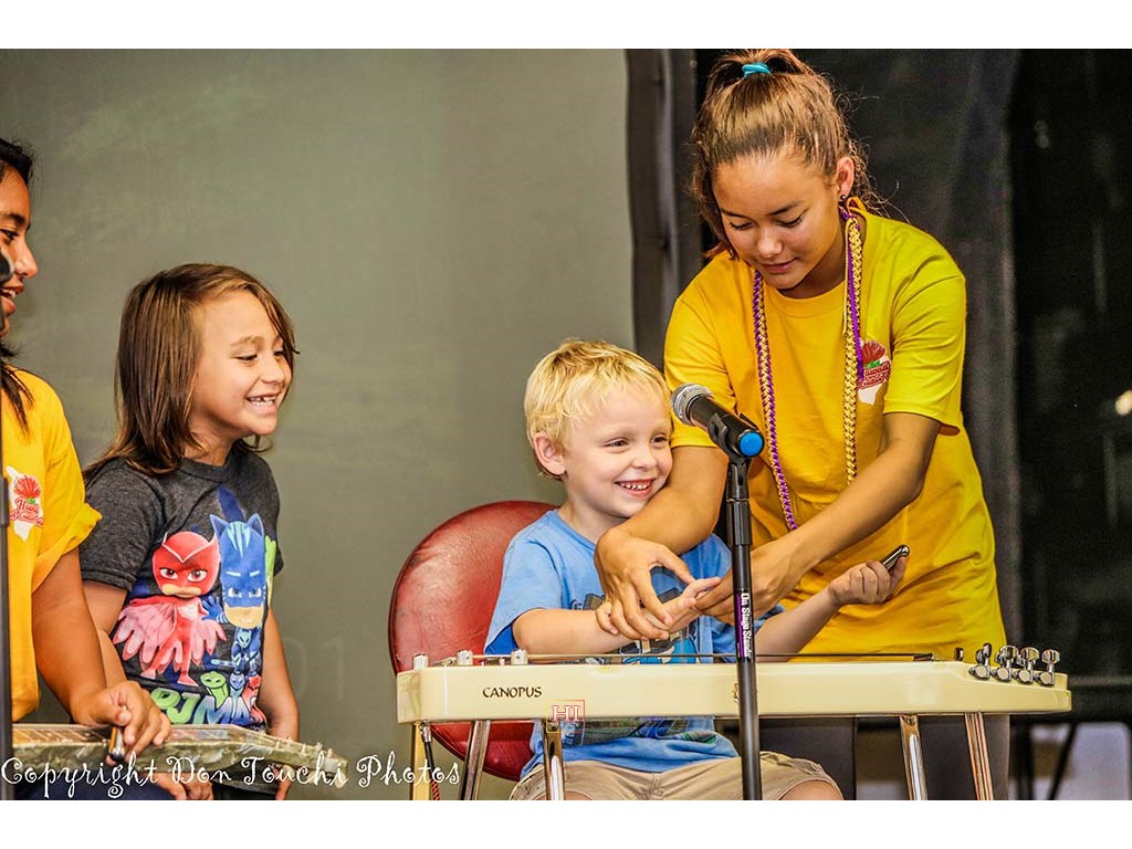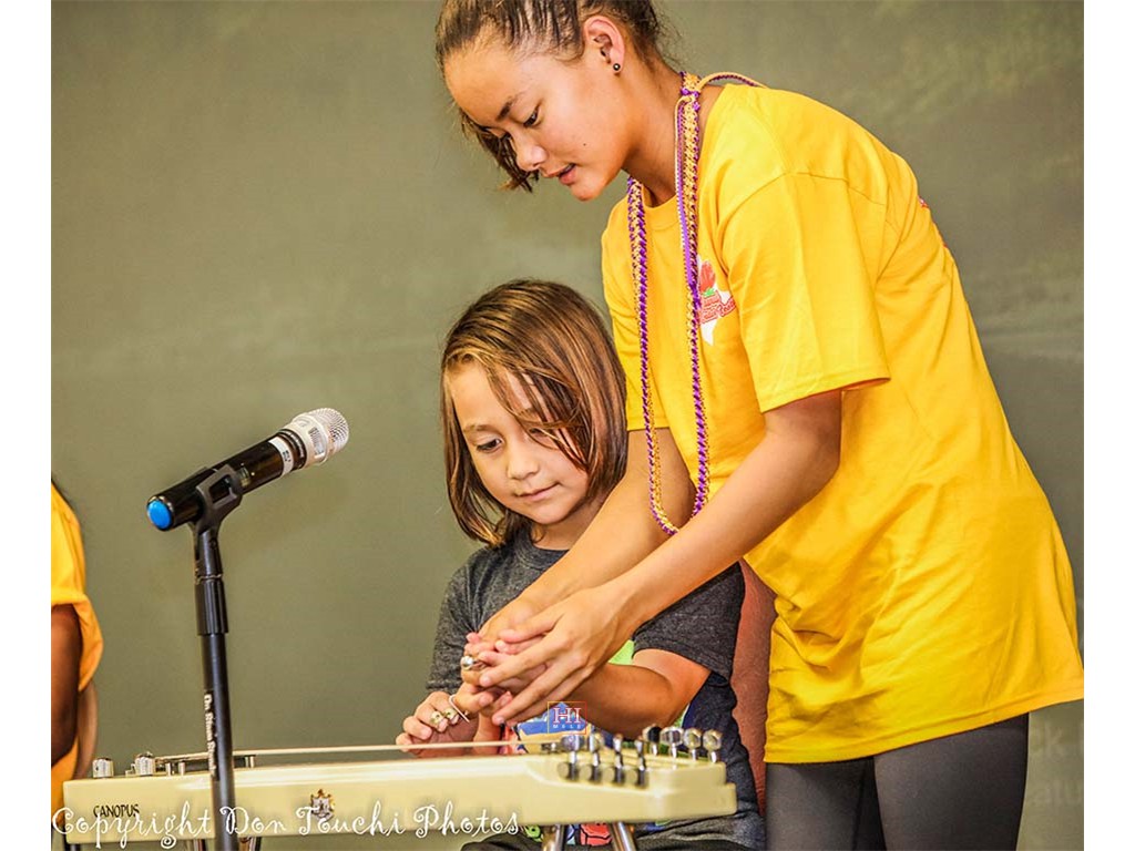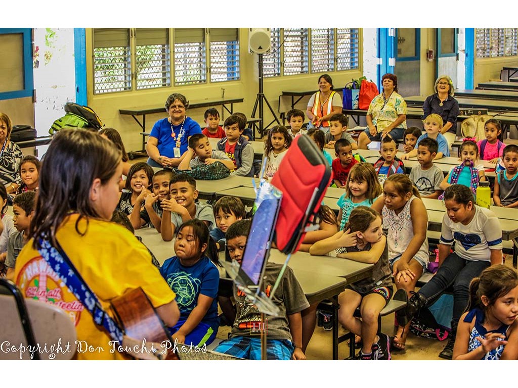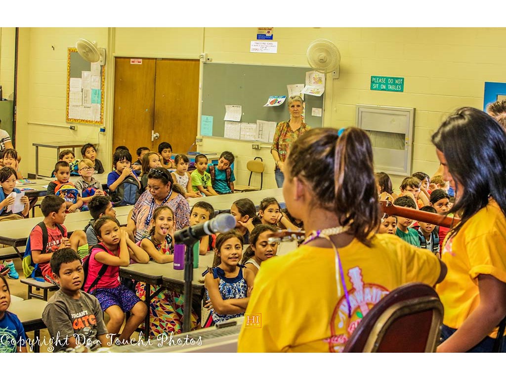 School visiations were made to Kealakehe Elementary School and Waikoloa Elementary School. Presentation teams gave students an introduction to the steel guitar, provided examples of Hawaiian music with the steel guitar, and encouraged students to try out the instrument.
