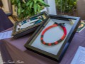 A craftsman demonstrates lei niho 'ilio - lei making from canine teeth.