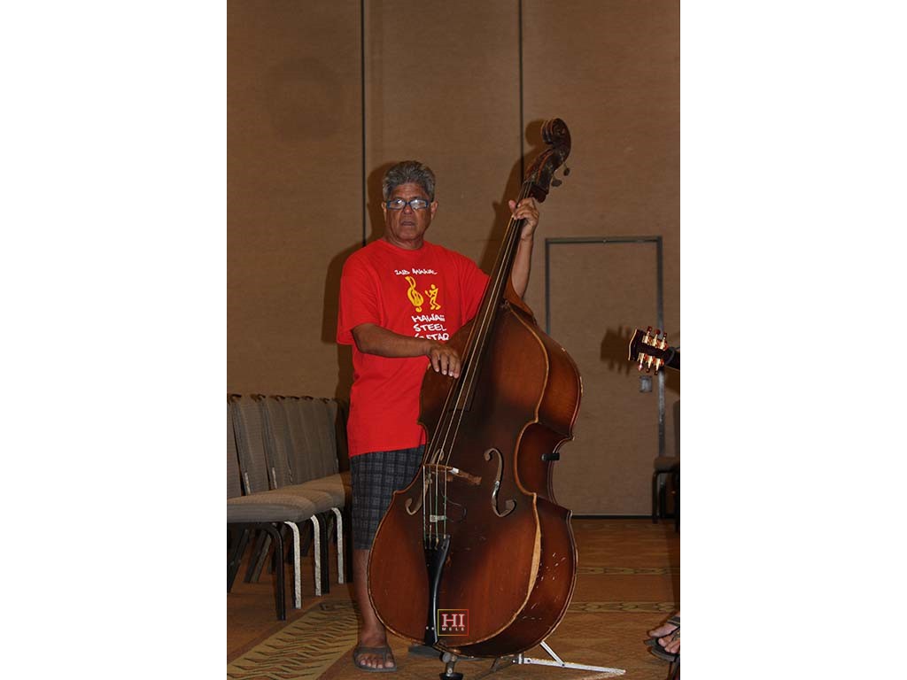 • Steel Guitarist Greg Sardinha on the upright bass. Photo by Eliza Demmi.
