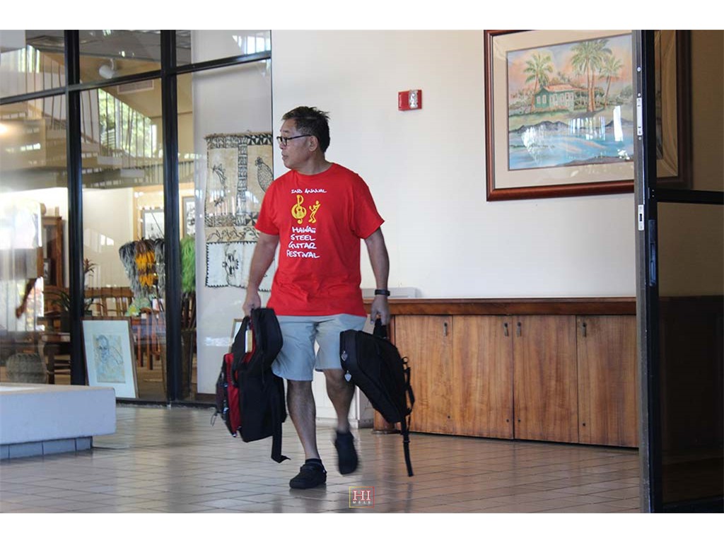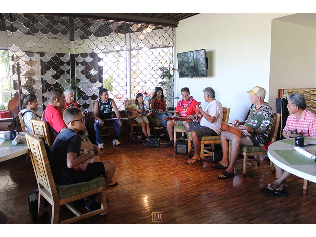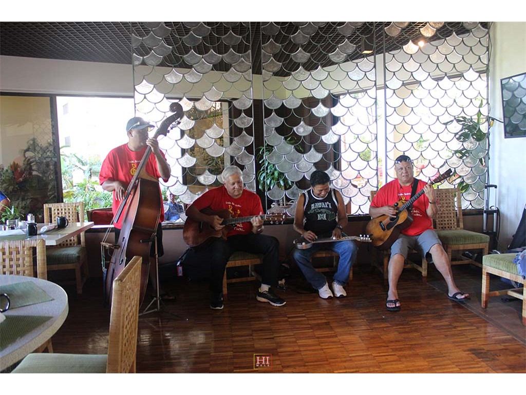 A kanikapila session with featured steel guitarists, Next Generation steel guitarists and musicians, was held on Sunday at the hotel's breakfast buffet.