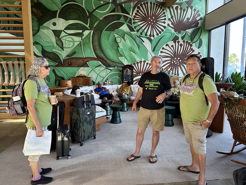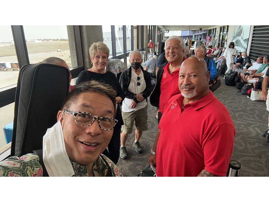 In the Hawaiian Airlines lounge: Kaipo Asing, Joseph Zayac, Don Touchi, Addison Ching, Sharon Ching, and Alan Akaka. PC-Alan Akaka