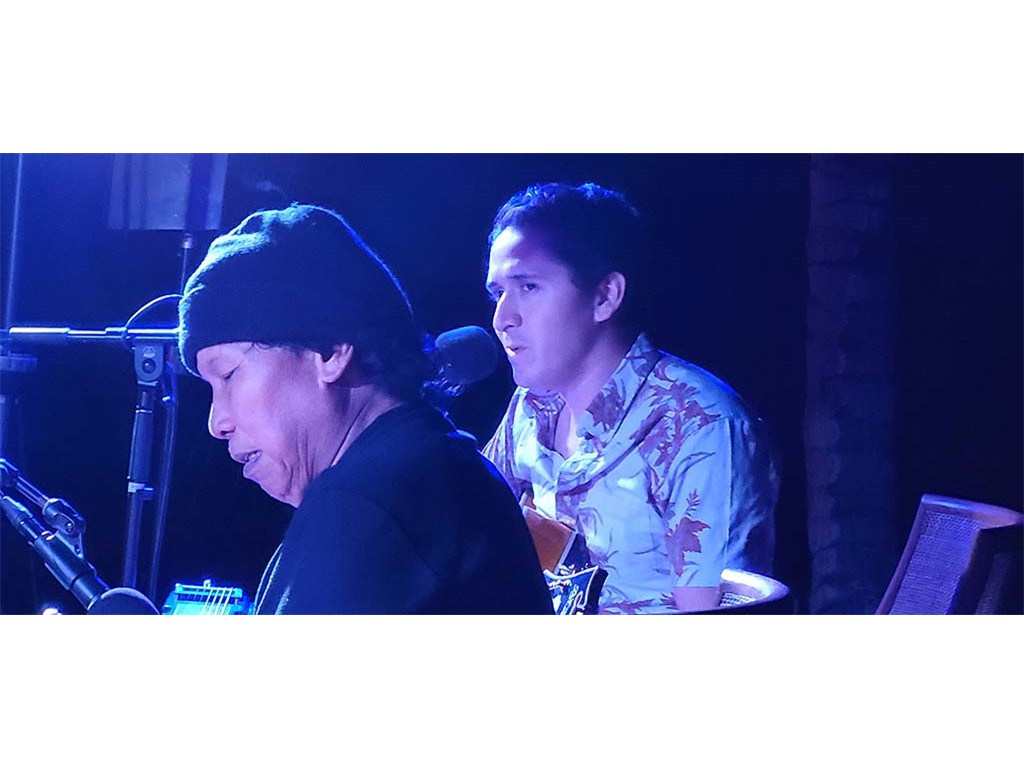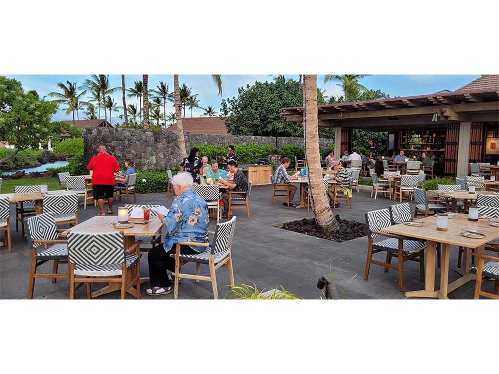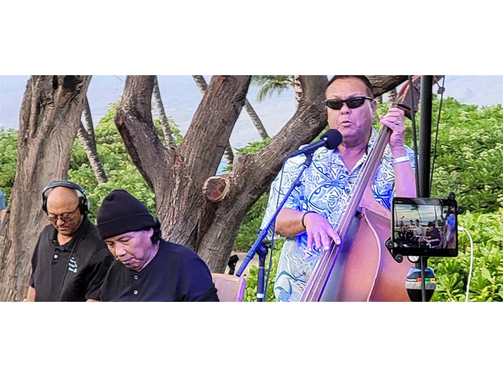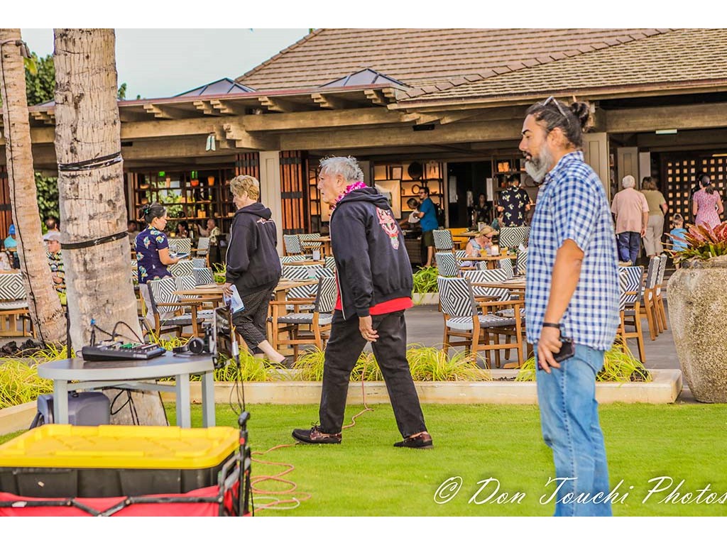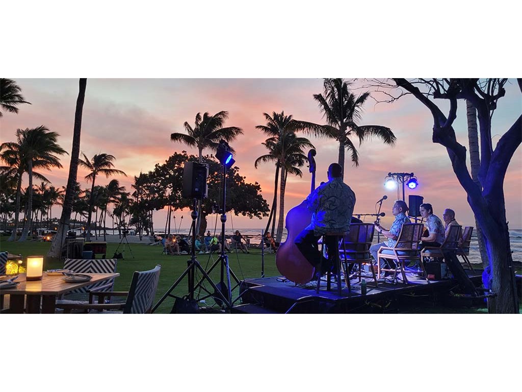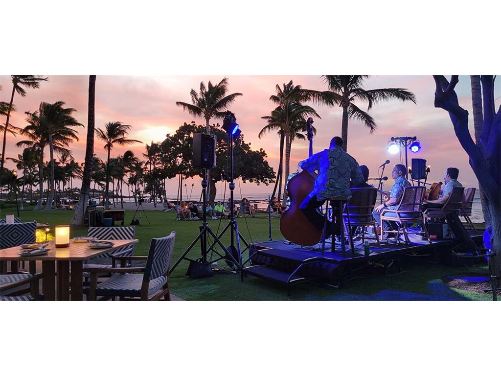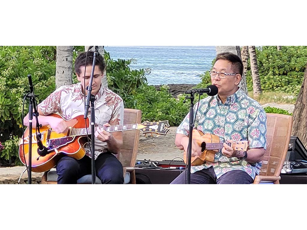 A kanikapila featuring festival musicians was presented Thursday evening at the resort's Canoe House restaurant as a part of the Hawai‘i Island Steel Guitar Experience at Mauna Lani. Restaurant guests were treated to live Hawaiian entertainment performed by festival musicians braving the fierce wind conditions.