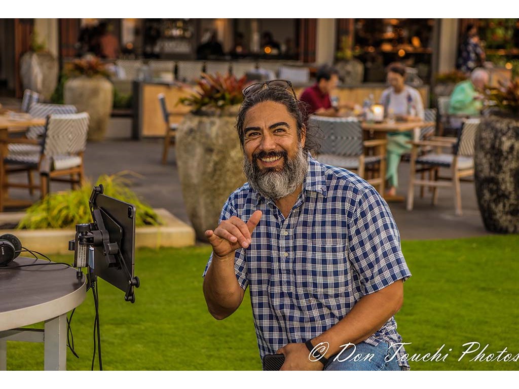 HIMELE director Larry Holu administers guest surveys to Canoe House patrons. PC-Addison Ching.