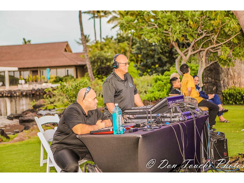 The sound system setup with Derek Higa and Ira Shizaki from Show Systems Hawaii.