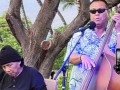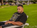 Shane Lyman enjoying the kanikapila from his lawn vantage point.
