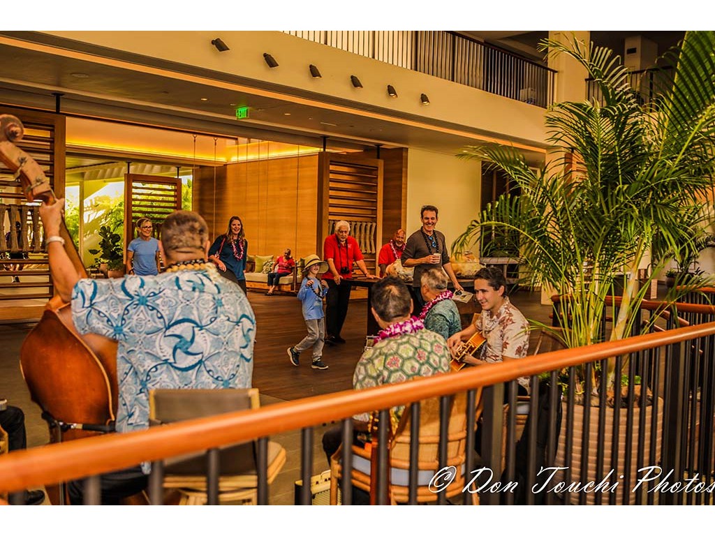 A kanikapila featuring festival musicians was presented on Thursday at the resort's lobby entrance, greeting guests as they entered the resort. Due to the kanikapila's popularity, a second lobby kanikapila was held in the resort's Hale I‘ike cultural area the following day.