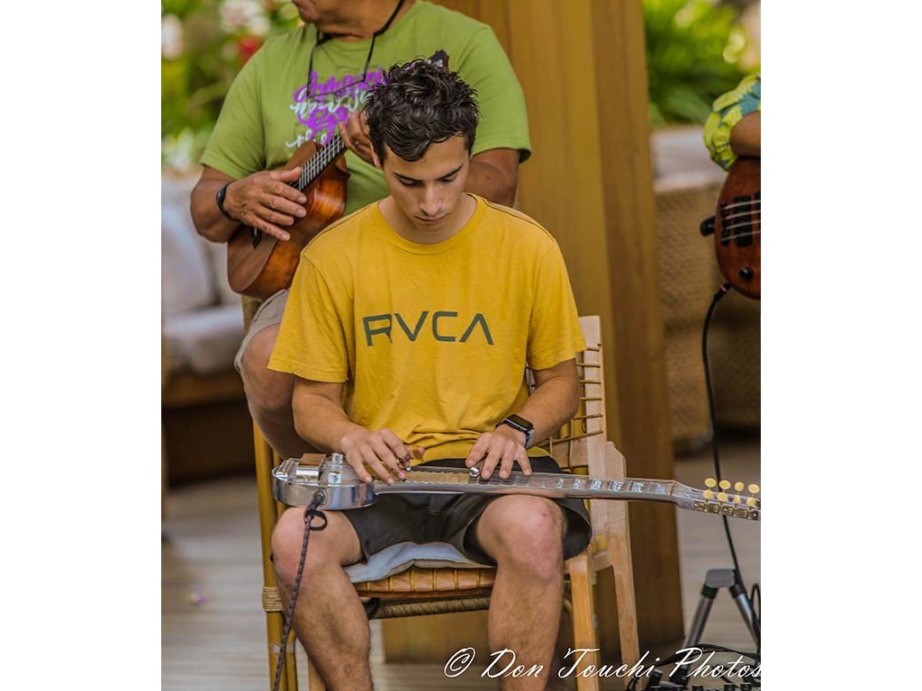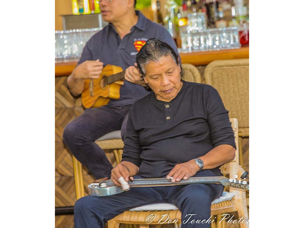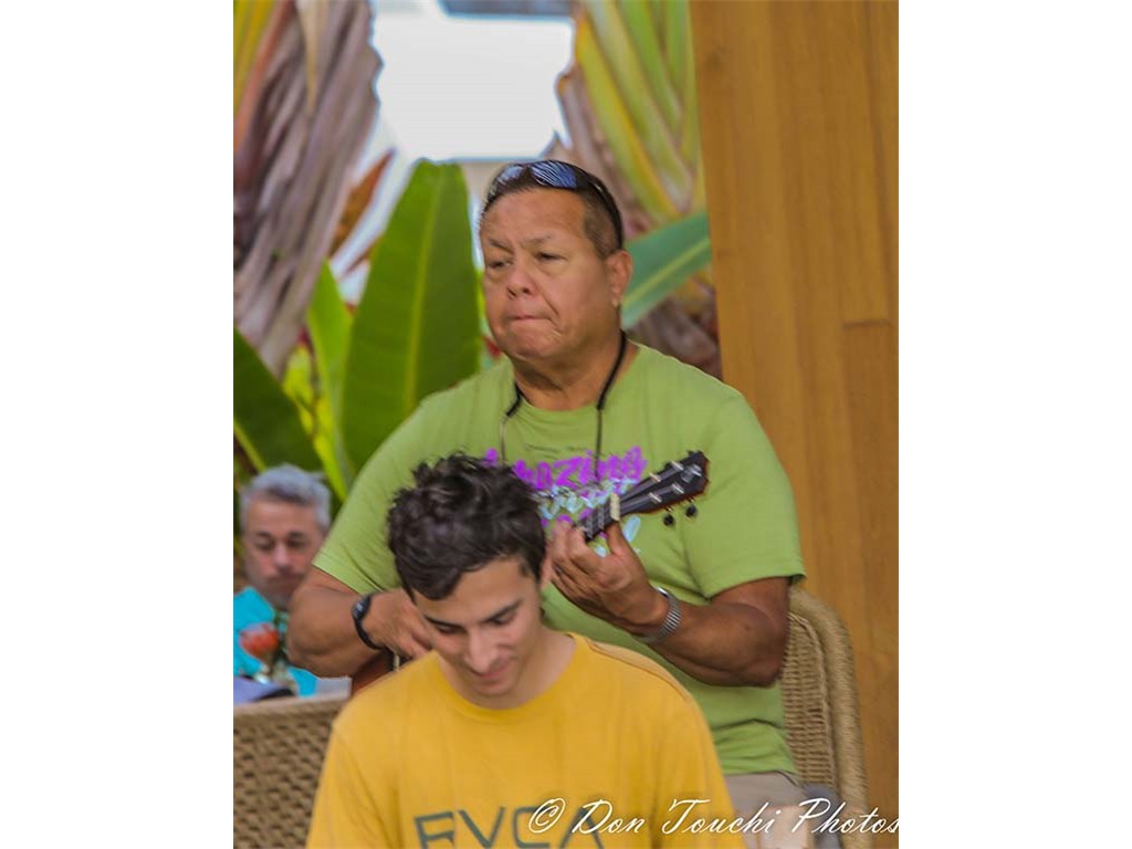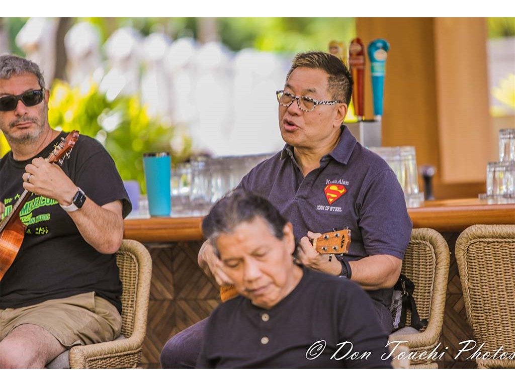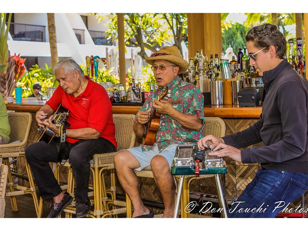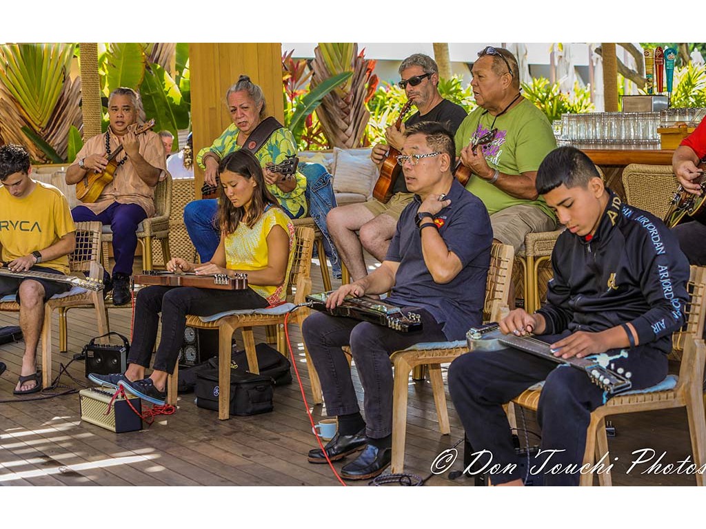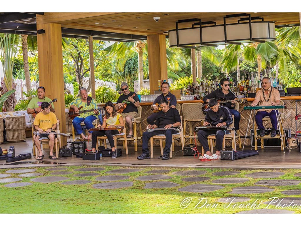 A Hawaiian entertainment kanikapila featuring festival musicians was presented the resort's Ha‘Lani restaurant Sunday brunch. The presentation included musicians playing various instruments and in various combinations.