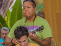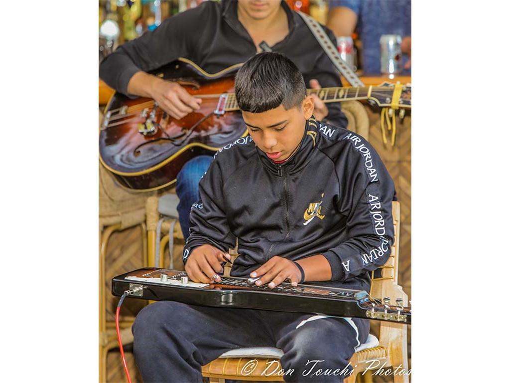 Sunday kaninapila participants; Front: Ethan Goore, Tai Misailidis, Bobby Ingano, Enosa Lyman. Rear: Kaipo Asing, Helene Woodward, Nate Goore, Alan Akaka, Joseph Zayac, and Ed Punua. Musicians rotated during the kanikapila.