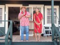 Setting up on the Eva Parker Woods Cottage porch.