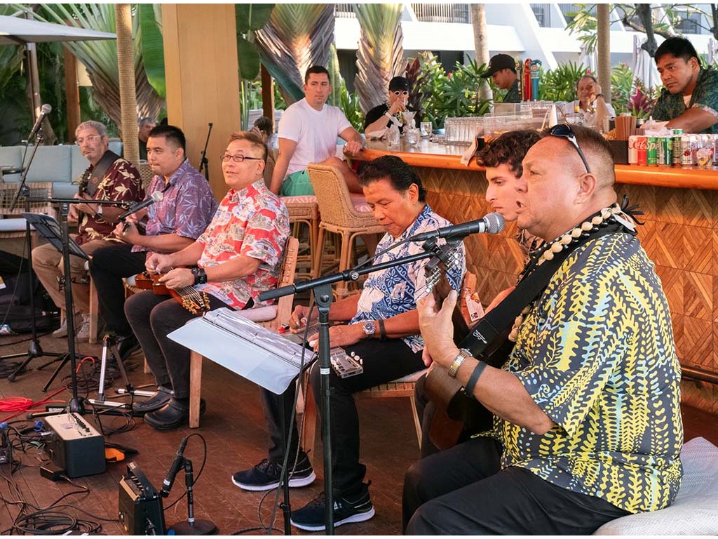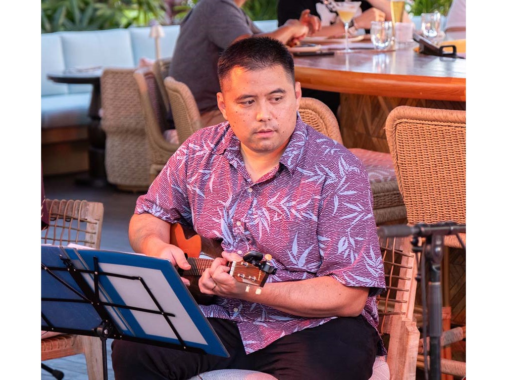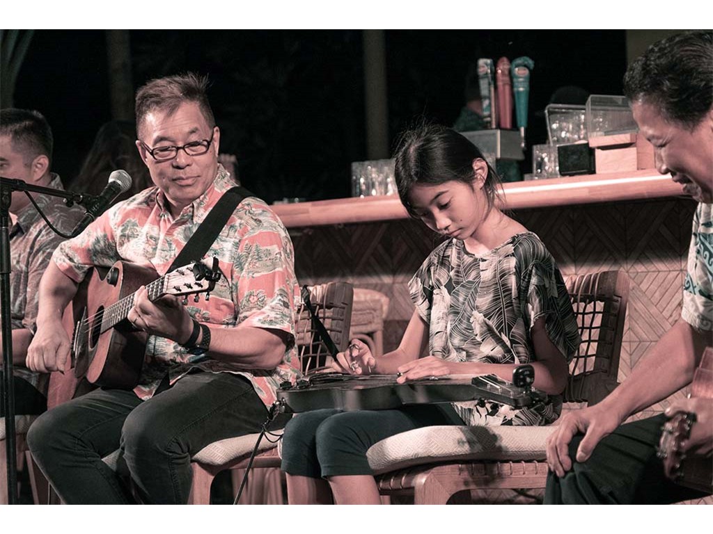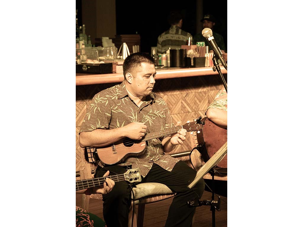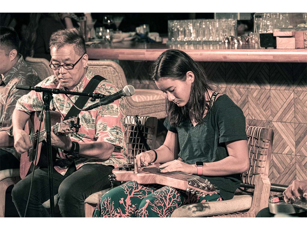 A kanikapila was held on Thursday from 5:00 PM to 7:30 PM providing entertainment for the resort's HaLani Restaurant. Participants included some festival muusicians and NextGen steel guitarists. Musicians were observed playing multiple instrumentss throughout the kanikapila, demonstrating their versatility.