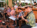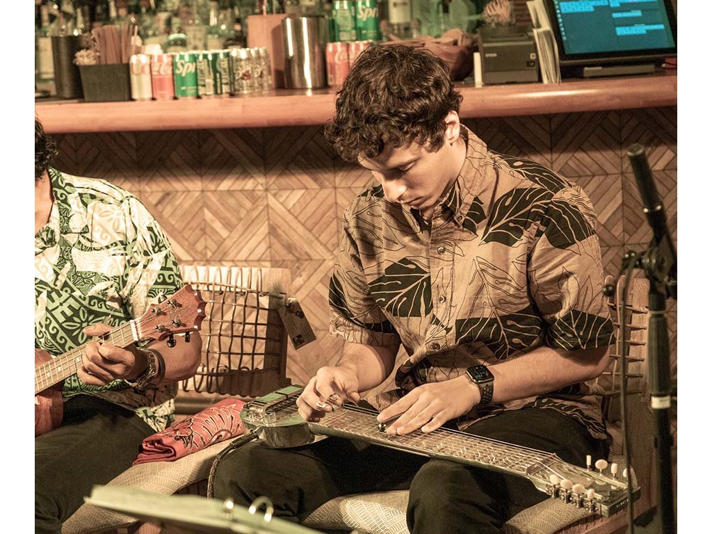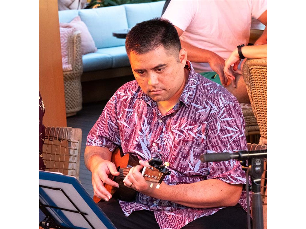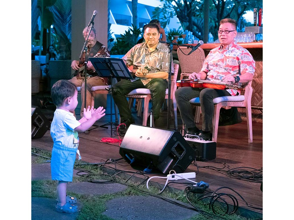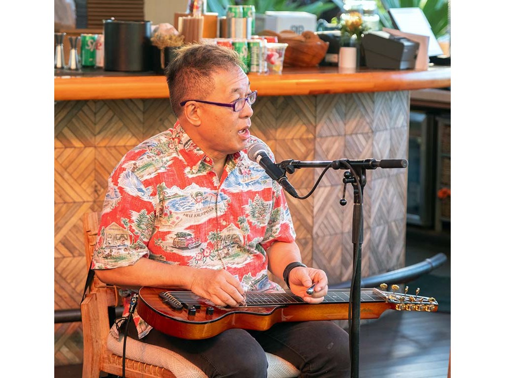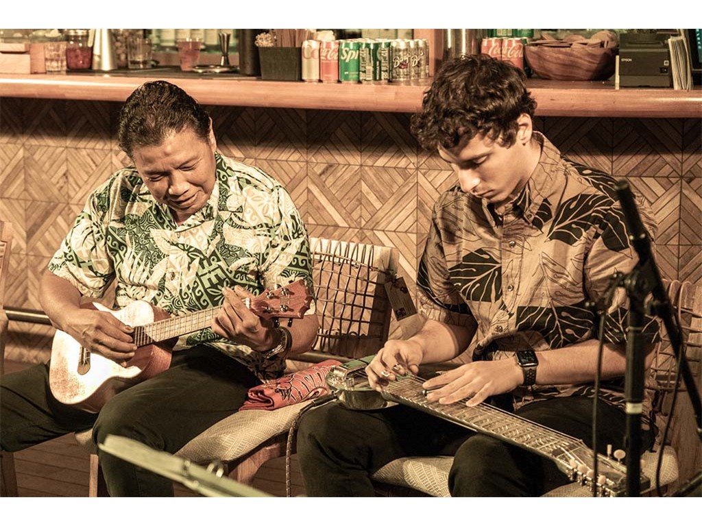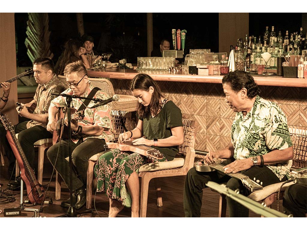 A kanikapila was held on Thursday from 5:00 PM to 7:30 PM providing entertainment for the resort's HaLani Restaurant. Participants included some festival muusicians and NextGen steel guitarists. Musicians were observed playing multiple instrumentss throughout the kanikapila, demonstrating their versatility.