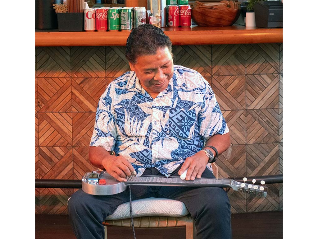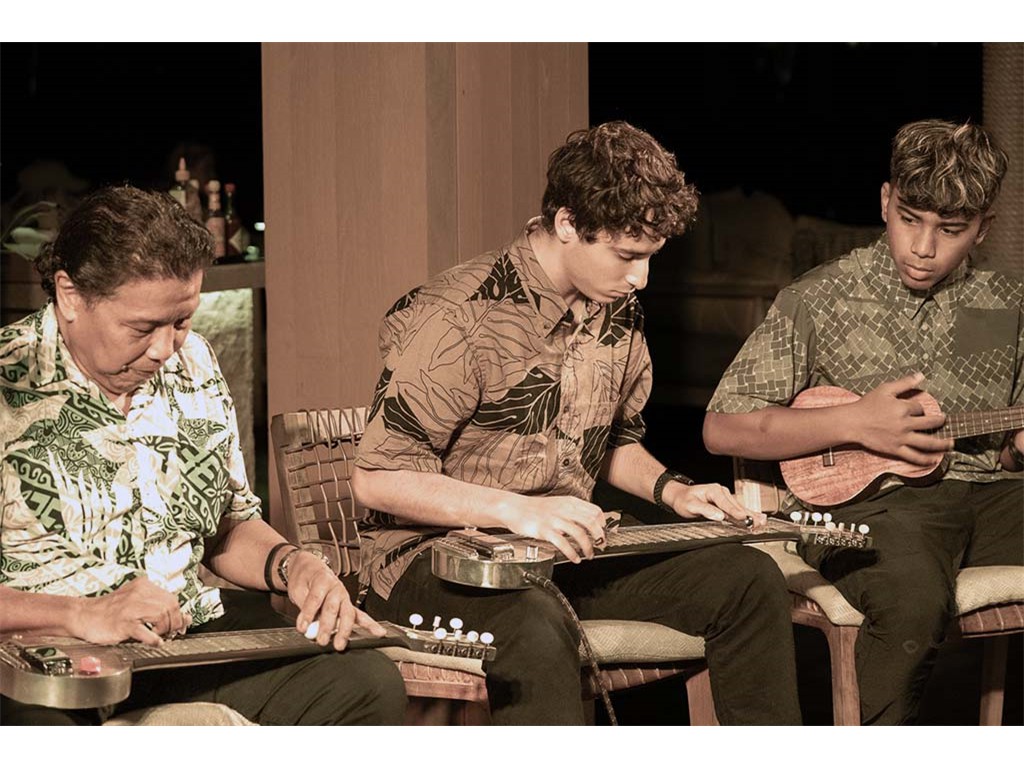NextGen steel guitarist Enosa Lyman with Kaipo Lindsey and Alan Akaka.