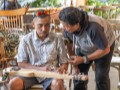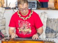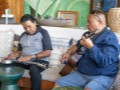 Bobby gives Judge Florendo a playing tip with Kevin Speyer practicing on his steel guitar.