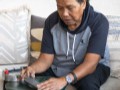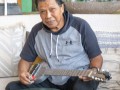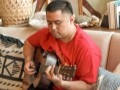 Kaipo Lindsey shows Judge Florendo how to pick the steel guitar. Also in picture: Kevin Speyer.