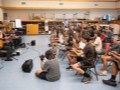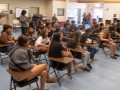 Students watch and listen intently to the presentation.