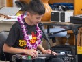 A student tries out the steel guitar.