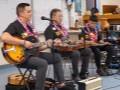 As Alan plays this steel guitar, the group can tell the difference in sound between an acoustic steel and an electric steel guitar.