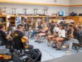 Alan shows his Asher electric steel guitar to the group.