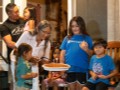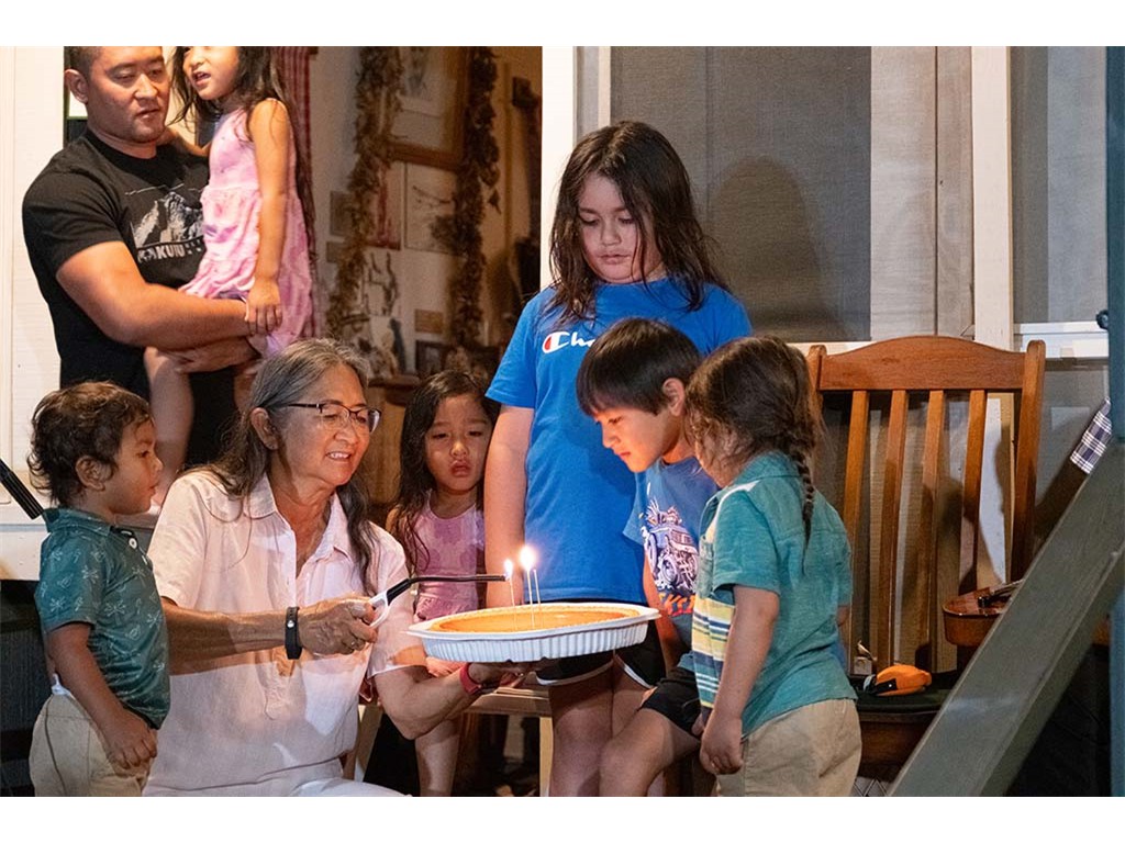 Someone is celebrating a birthday. Anna Akaka lights the candles.