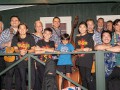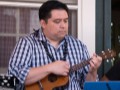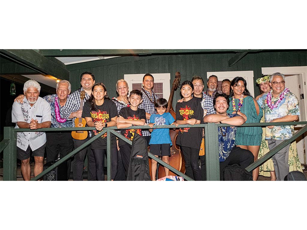 On the porch: Eric Keawe, Kimo Kahoano, Kaipo Lindsey, Tai Misailidis, Helene Woodward, Isaac Woodward, David Woodward, the birthday boy, Hiʻipoi Lindsey, Alan Akaka, Geri Valdriz, Devin Nakahara, Kaipo Asing, Mālie Lyman, Vanessa Punua, and Ed Punua.Back to Gallery: 2024 Festival