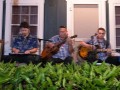 On the porch: Danny Akaka, Alan Akaka, Hiʻipoi Lindsey, Ethan Speyer, David Woodward, Kaipo Lindsey, and Tai Misailidis.