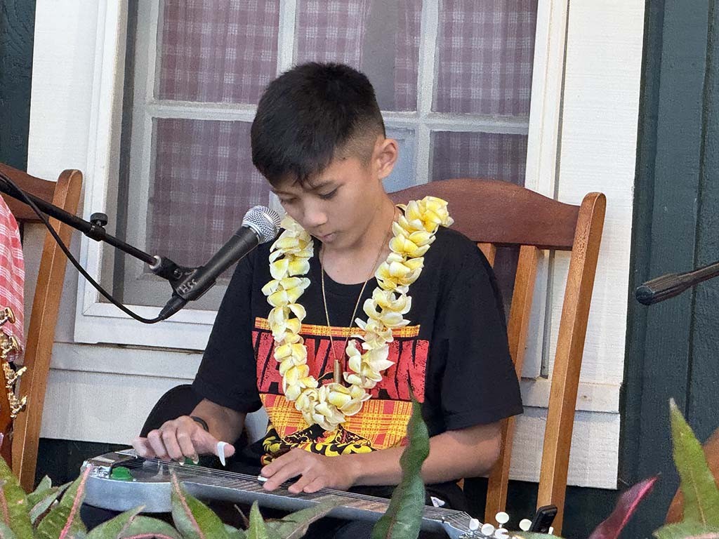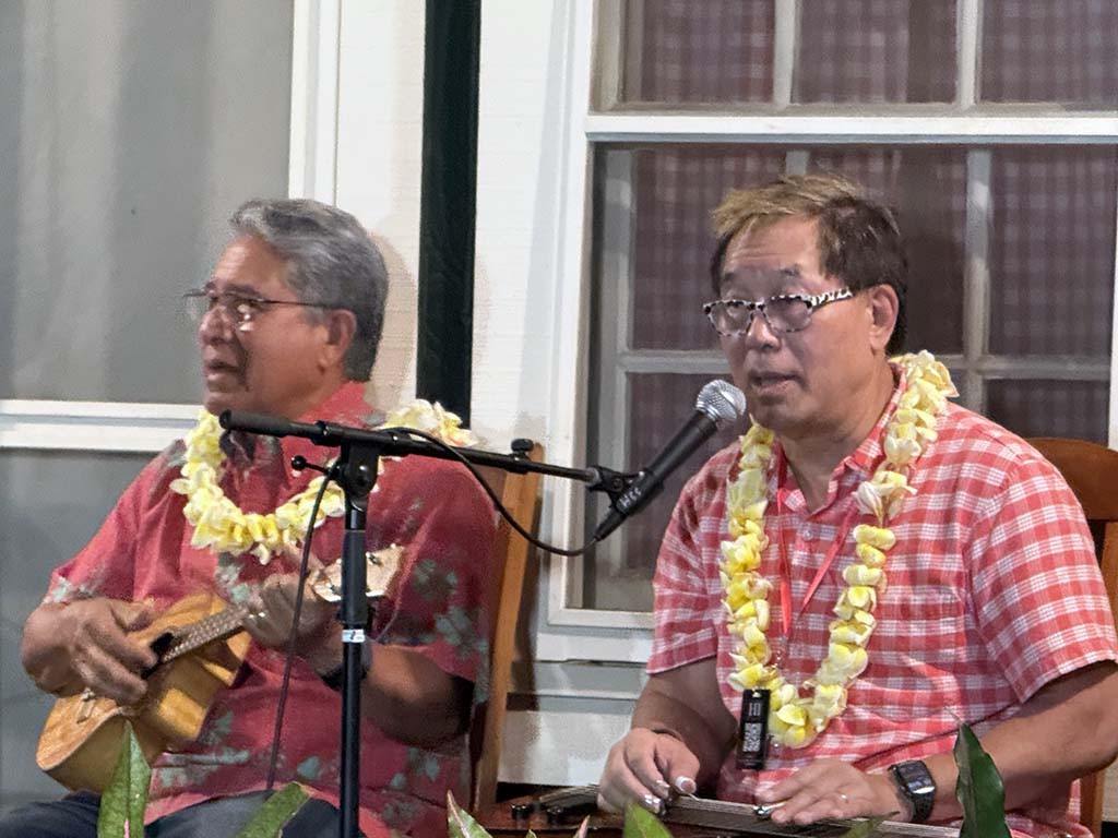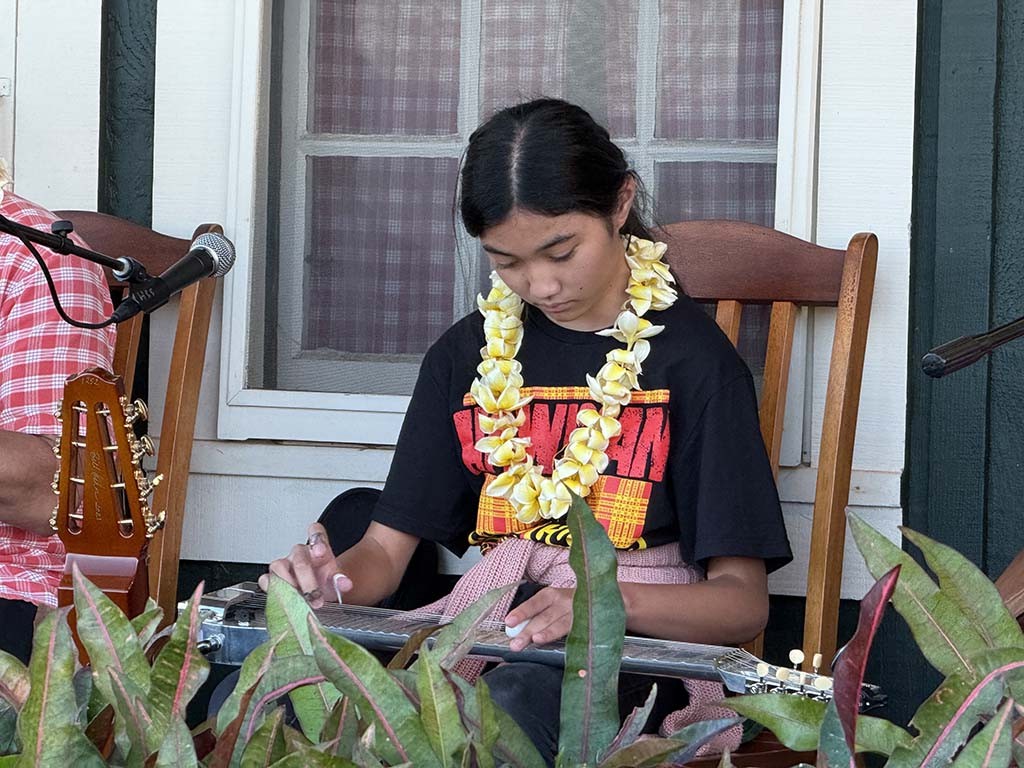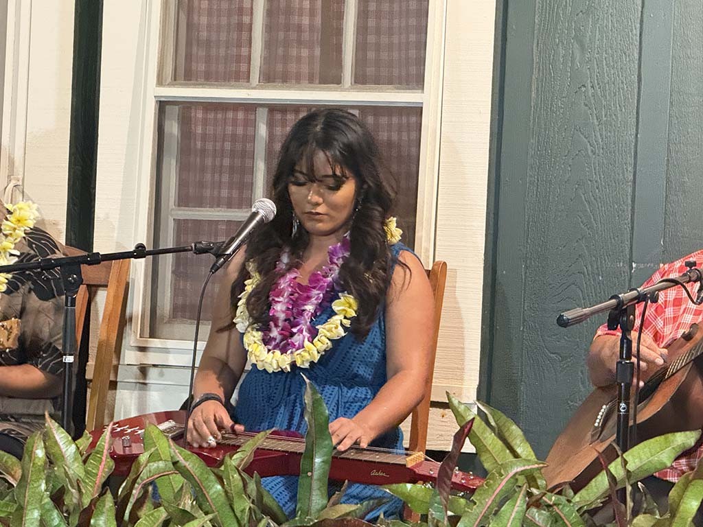 Saturday's Twilight at Kalahuipua‘a community program was presented at the Eva Parker Woods Cottage on the Mauna Lani grounds and featured musicians from the Hawai‘i Island Steel Guitar Experience at Mauna Lani in a program of Hawaiian steel guitar entertainment.