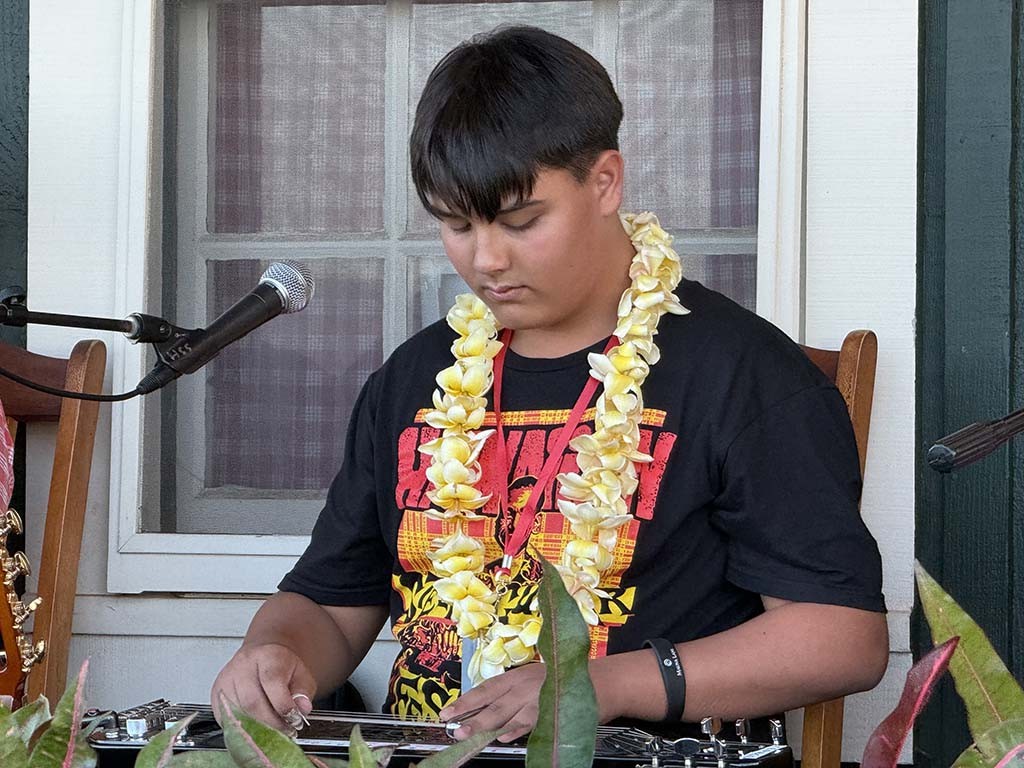 Saturday's Twilight at Kalahuipua‘a community program was presented at the Eva Parker Woods Cottage on the Mauna Lani grounds and featured musicians from the Hawai‘i Island Steel Guitar Experience at Mauna Lani in a program of Hawaiian steel guitar entertainment.
