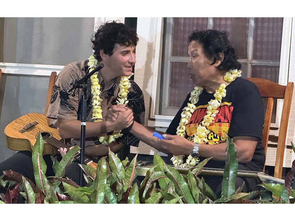 Steel guitarist Ethan Goore with Alan Akaka and Mālie Lyman.